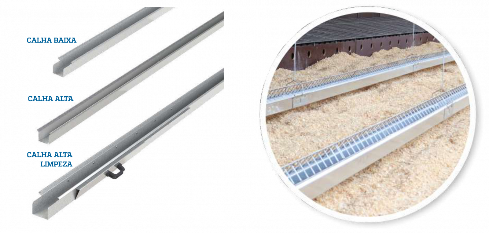 Avicultura Frango de Corte Comedouros- Fabricada com chapa galvanizada NBR-7008 ZC 275;