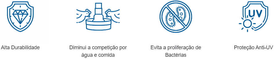 Produto indicado para o controle de aves na fase de crescimento. É um importante aliado do produtor, melhorando o manejo e o aproveitamento do galpão, a uniformidade e ambiência do lote, o aumento da produtividade e proporcionando economia com gastos energéticos. O conjunto diminui a competição por água e comida, oportunizando que todas as aves alimentem-se e desenvolvam-se melhor.