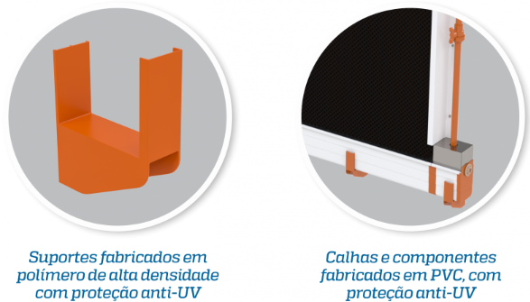 • Estrutura fabricada em PVC rígido de alta resistência com proteção anti-UV;